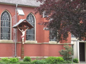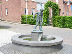 Statue "Der Randerather Grasbürger" an der Kirche, Randerath