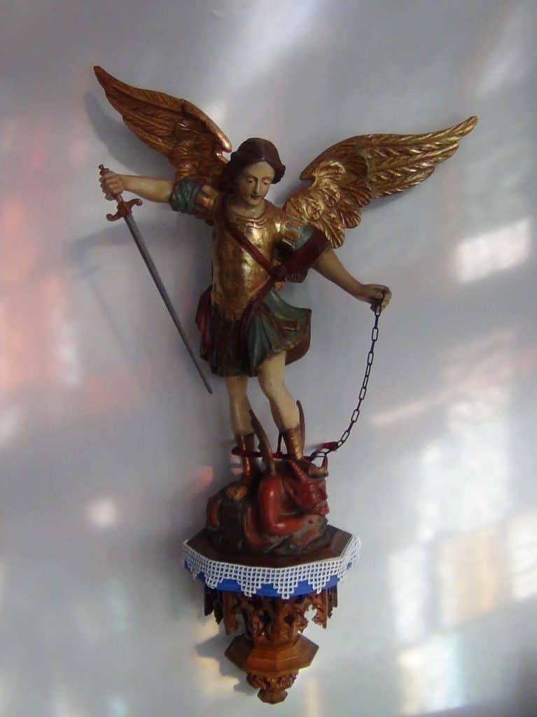 Die Bewohner eines Wirtshauses auf dem Hingen übten lange die Wartung und ein Patronatsrecht über das Heiligenhäuschen aus. Als sie Ziegelsteine für einen neuen Bierkeller brauchten, rissen sie das Häuschen einfach ab. So verschwand nicht nur das Heiligenhäuschen, sondern auch die Statue des hl. Erzengels Michael. Als Jahre später ein Haus auf dem Hingen abgebrochen werden sollte, fand man ihn dort auf dem Dachboden. Für einen Spottpreis wurde er verkauft und gelangte später, wie auch immer, in die Hände des Pfarrers Hencken. Er ließ den lang verschwundenen Erzengel restaurieren, und 1901 wurde er in der Turmhalle der neuen Kirche aufgestellt.