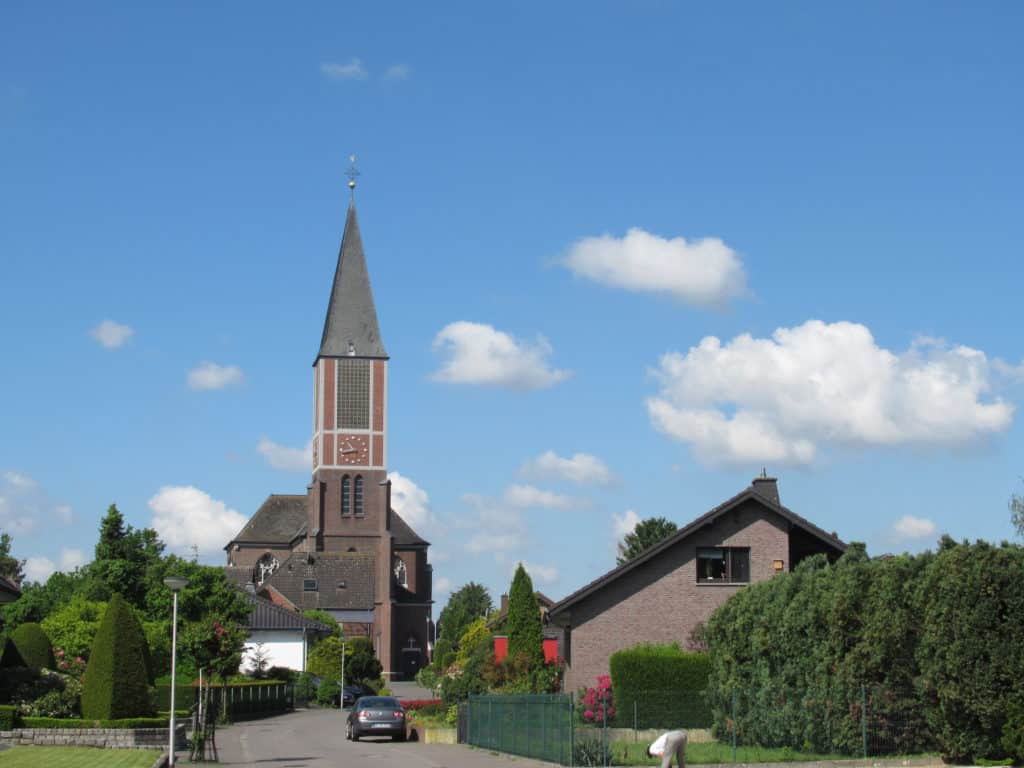 Einst mussten die Menschen sogar, wenn sie zum Gottesdienst wollten, fast bis Vlodrop laufen. Denn dort stand die gemeinsame Kirche der beiden Gemeinden, die zum Bistum Roermond gehörten. Erst um 1561 bekam das Dorf an der Rur seine erste eigene Kirche, die 1776 durch einen Neubau ersetzt wurde. Der Turm dieses alten Gotteshauses steht noch heute auf dem Friedhof. Er ist Zeuge des schrecklichen Massakers von 1591. Spanische Söldner mordeten in der damaligen Kirche und bis heute heißt es im Volksmund, „et jeet dureen wie en Karke en de Kerk“. Auch das Kreuz an der Karker Mühle erinnert an dieses schreckliche Ereignis.