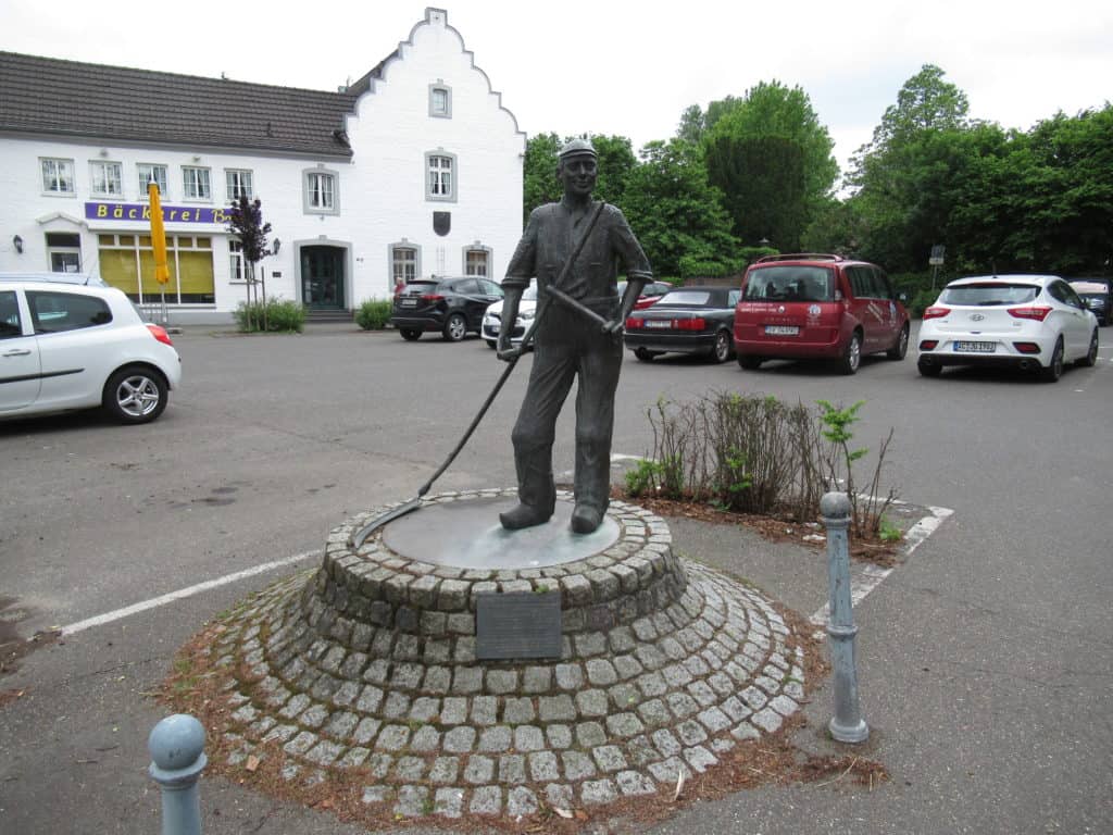Gehen wir zum schon oben erwähnten Marktplatz. Umgeben von mehreren denkmalgeschützten Bauwerken und der Burg vorgelagert, ist auch er eine Besonderheit in der Region. Und dort begegnen wir dem Grasbürger, einer Bronzefigur, die daran erinnert, wie die Randerather zu ihrem Namen kamen.
