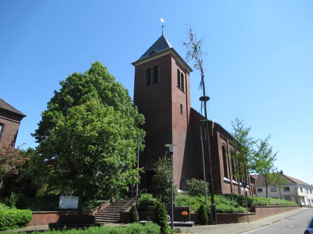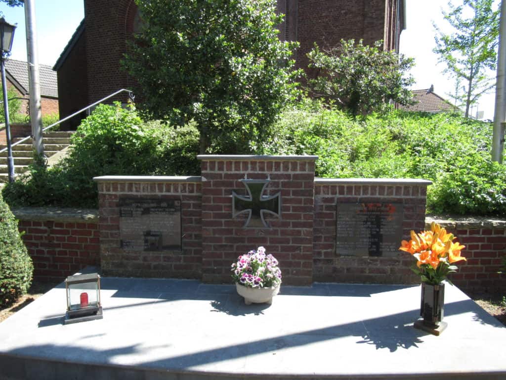 Vor der Kirche sehen Sie das Ehrenmal für die gefallenen und vermissten Soldaten der beiden Weltkriege. Im Inneren der Kirche gibt es: eine Madonna aus dem 15. Jahrhundert, weitere Heiligenfiguren aus dem 18. Jahrhundert, Fenster des Kirchenmalers Heribert Reul und ein Porträt des ersten Pfarrers Peter Joseph Vonaachten, ein Gemälde des Heinsberger Porträt- und Historienmalers Mathieu-Joseph Jungbluth (1807-1875).