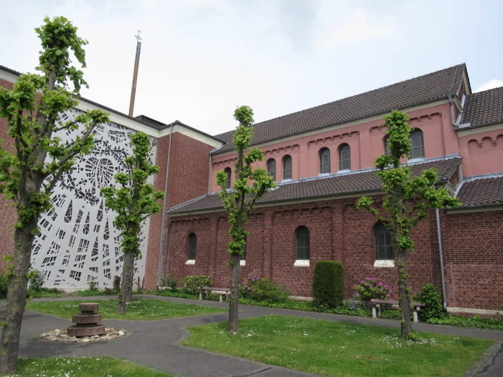 An der stark befahrenen Wassenberger Straße präsentiert sich neben Kindergarten und Mehrzweckhalle die Kirche. Zur Straße hin erscheint sie als moderner Backsteinbau aus den 1960er Jahren. Im Inneren und von der Friedhofsseite her erkennt man, dass der Neubau den historischen Teil des Gotteshauses als Querschiff erweitert.